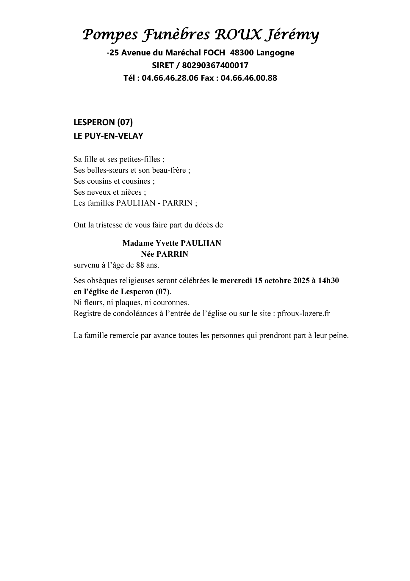 Décédée à Nîmes (30900, France) le jeudi 9 octobre 2025 à l'âge de 88 ans