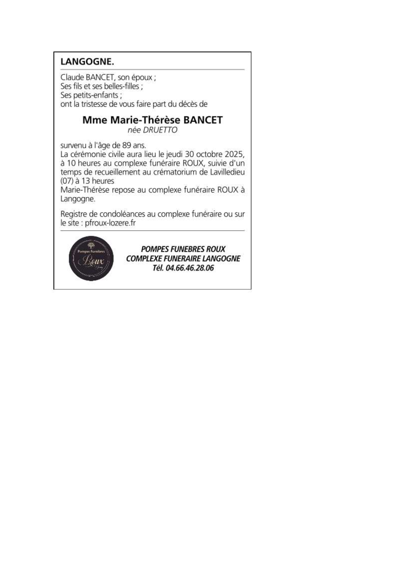 Décédée à Mende (48000, France) le mercredi 22 octobre 2025 à l'âge de 89 ans